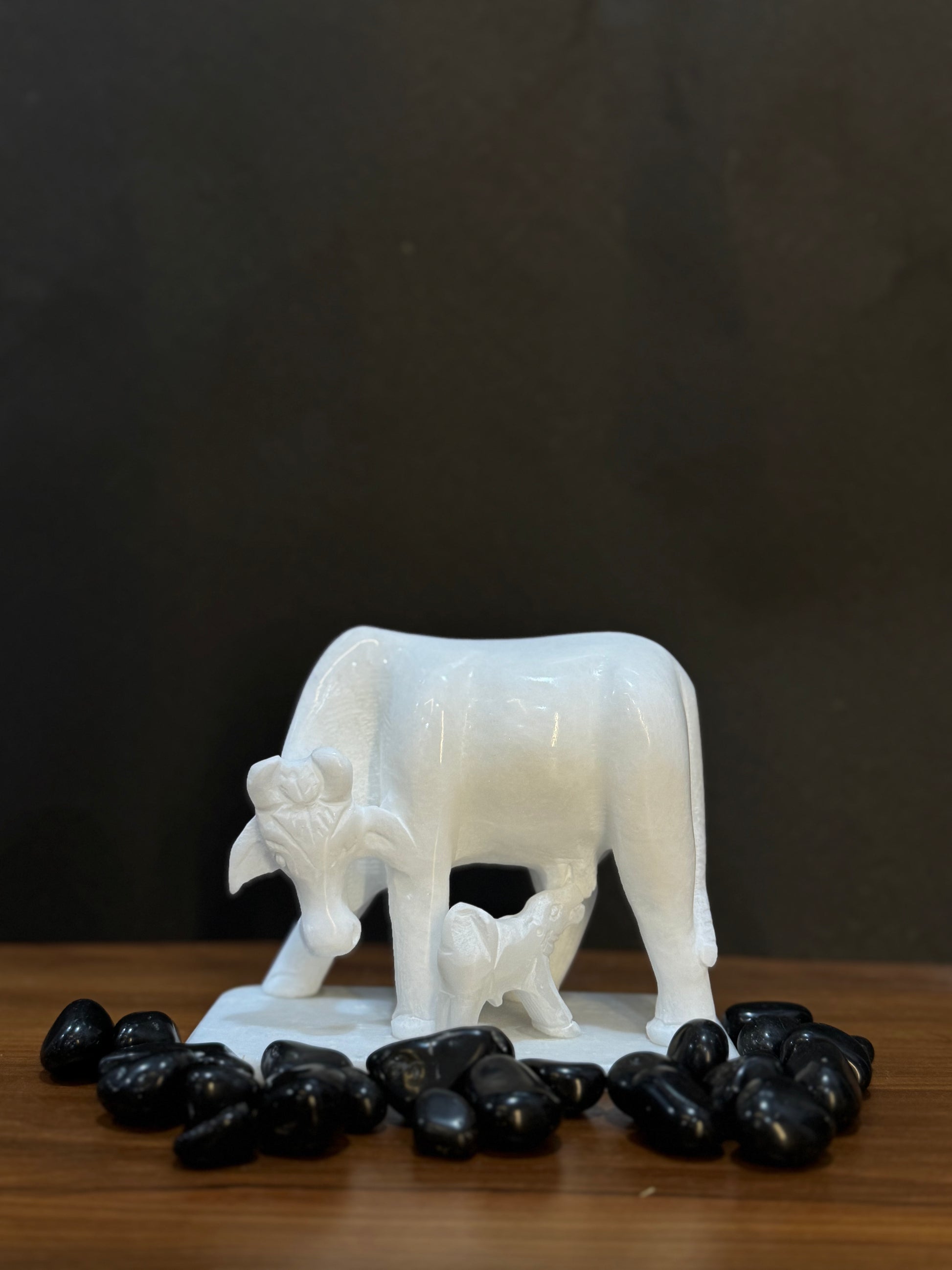 Whether placed in a pooja room or showcased as a decorative centerpiece, this marble cow figurine adds a touch of spirituality and timeless artistry to any space.