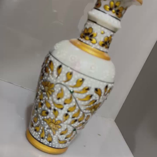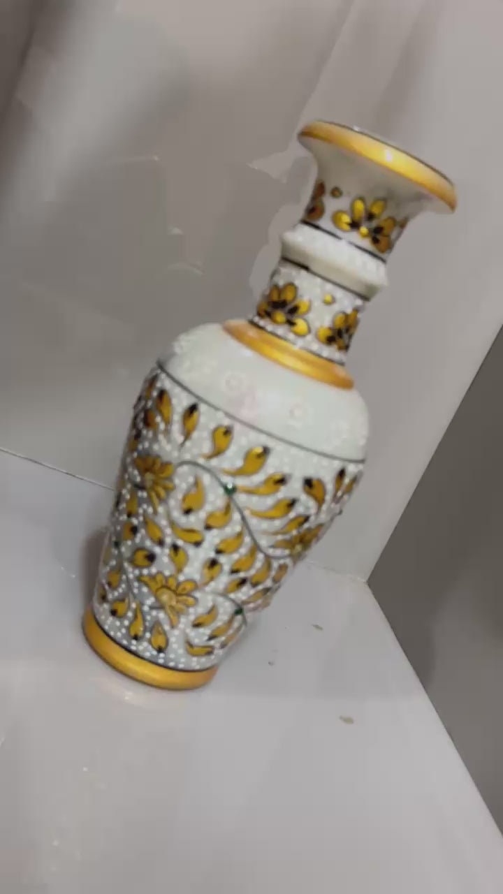 Handcrafted White Marble Flower Vase with Traditional Rajasthani Artwork - Stonex Handicrafts