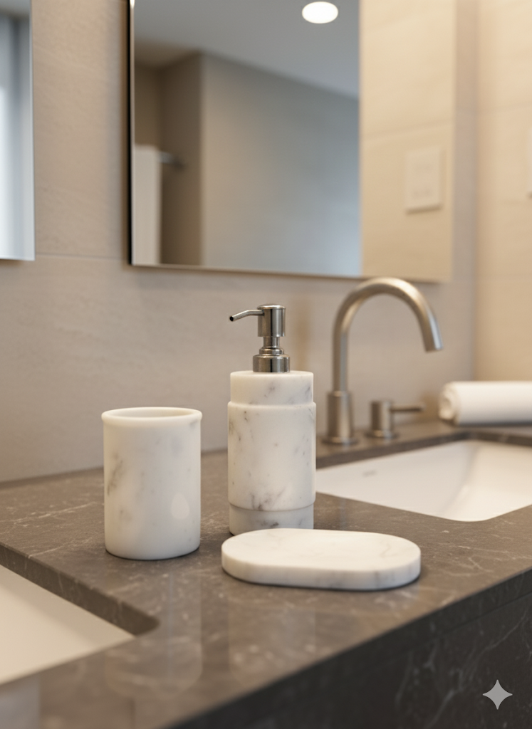 White Marble Bathroom Set - Stonex Handicraft